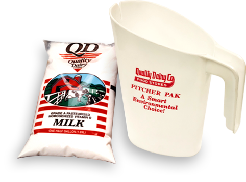 In 1969, becoming known for their innovation in the dairy industry, Quality Dairy introduced their Bagged Milk Pitcher Packs. QD’s Alan Martin & Bob Vanderstow were responsible for bringing bag milk to Lansing. Though the idea originally came from Canada, QD was the first to sell bagged milk here in the United States. QD originally sold their bags of milk in quarts that resembled a small pillow. They soon added half gallons as the new form of milk sales caught on in Lansing. QD’s bagged milk was discontinued in 2000, but many long-time Lansing residents still talk about it fondly.