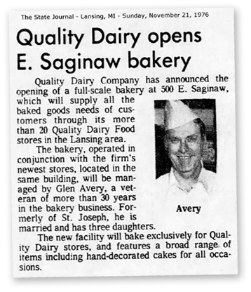 Quality Dairy’s stores changed the way that Lansing got their dairy products. The milk jugs shown above were the ones used by Quality Dairy in those early years. The bottles were filled with fresh milk daily. Customers would return the empty bottles and pick-up full bottles at their convenience – No more waiting for the milkman to deliver your milk.