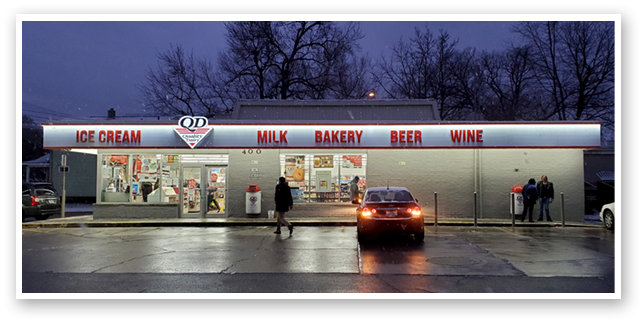 by Gregory J & Pauline Martin and Harvey & Mildrid Mack with an initial investment of $600. They worked out of a small facility in the 1400 block of South Washington Ave. in Lansing. The original QD Stores were small and sold milk on a cash and carry basis. Prior to QD’s stores, milk was commonly delivered directly to homes by a milk man.