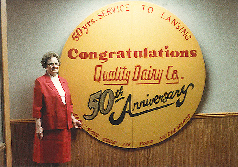 Quality Dairy’s stores changed the way that Lansing got their dairy products. The milk jugs shown above were the ones used by Quality Dairy in those early years. The bottles were filled with fresh milk daily. Customers would return the empty bottles and pick-up full bottles at their convenience – No more waiting for the milkman to deliver your milk.