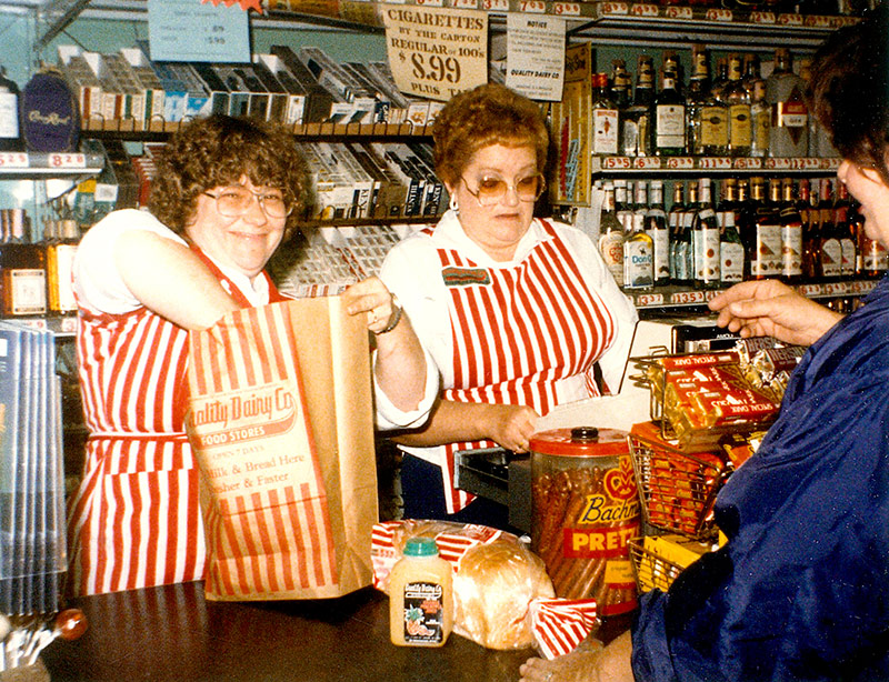 by Gregory J & Pauline Martin and Harvey & Mildrid Mack with an initial investment of $600. They worked out of a small facility in the 1400 block of South Washington Ave. in Lansing. The original QD Stores were small and sold milk on a cash and carry basis. Prior to QD’s stores, milk was commonly delivered directly to homes by a milk man.