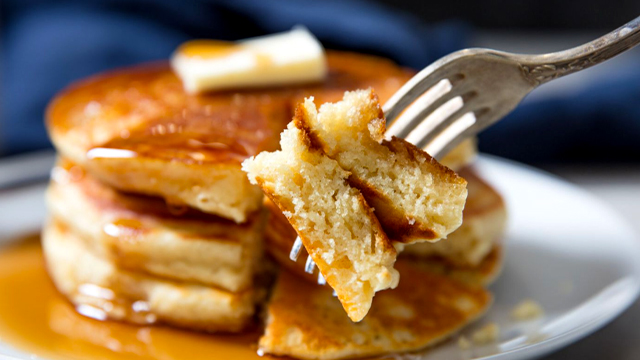 | | | 1) Heat skillet over medium-low heat or electric griddle to 375 degrees F. | | 2) Combine all ingredients and stir until large lumps disappear (do not beat or over-mix). | | 3) Let stand 1-2 minutes to thicken. | | 4) Pour slightly less than 1/4 cup batter for each pancake onto lightly greased skillet. | | TIP: For golden brown pancakes, use solid shortening instead of oil, butter, or margarine. | | 5) Cook for 90 seconds on the first side. Turn, and cook for another 60 seconds. | | TIP: For soft and fluffy pancakes, avoid turning them more than once. | | |